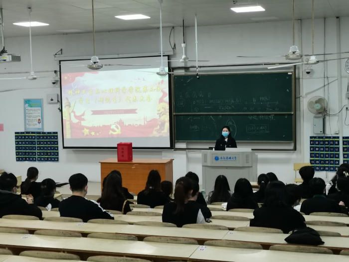 2022年11月7日晚18点30分,澳门银河娱乐城官网-线上娱乐城 第三次学生(研究生)代表大会于锡祺楼5楼501教室胜利召开!团委老师李清月、全体学研代表及学生会组织负责人参加了本次大会。